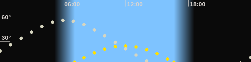 | Höchster Stand (Kulmination) | 06:13 Uhr (h=61.2°) |