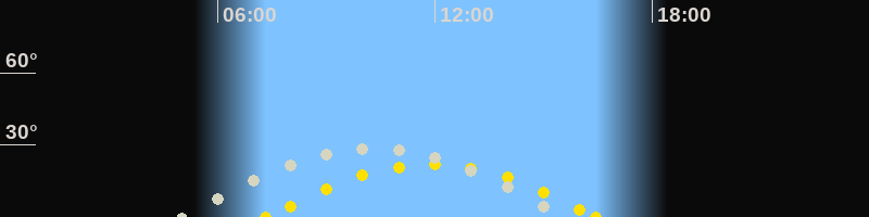 | Höchster Stand (Kulmination) | 10:22 Uhr (h=28.7°) |