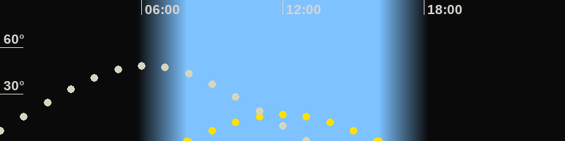 | Höchster Sonnenstand (Kulmination) | 12:00 Uhr (h = 16.9°) |