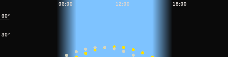 | Höchster Sonnenstand (Kulmination) | 12:03 Uhr (h = 16.3°) |