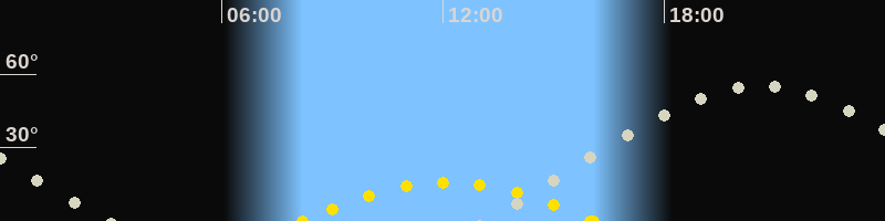 | Höchster Sonnenstand (Kulmination) | 12:08 Uhr (h = 15.8°) |