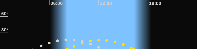 | Höchster Sonnenstand (Kulmination) | 12:16 Uhr (h = 16.9°) |