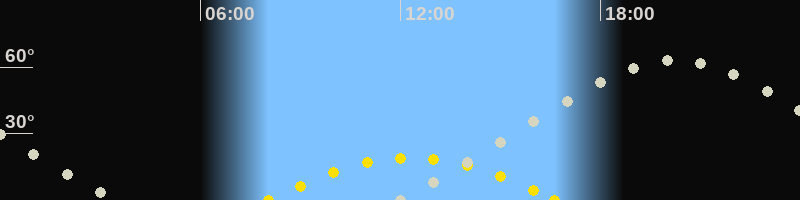 | Höchster Sonnenstand (Kulmination) | 12:21 Uhr (h = 19.1°) |