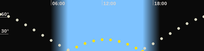 | Höchster Sonnenstand (Kulmination) | 12:22 Uhr (h = 20.3°) |