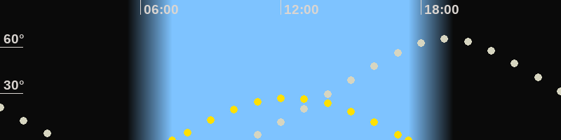 | Höchster Sonnenstand (Kulmination) | 12:24 Uhr (h = 27.2°) |
