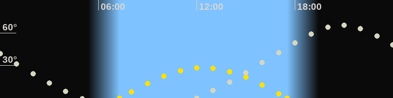 | Sonnenaufgang | 07:17 Uhr im Osten (αAz = 107.5°) |