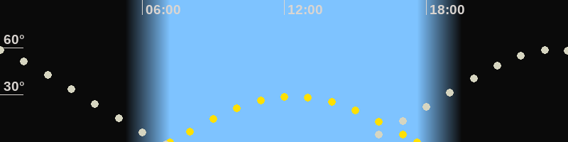 | Sonnenaufgang | 07:11 Uhr im Osten (αAz = 105.8°) |