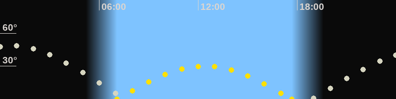 | Höchster Sonnenstand (Kulmination) | 12:23 Uhr (h = 30.1°) |
