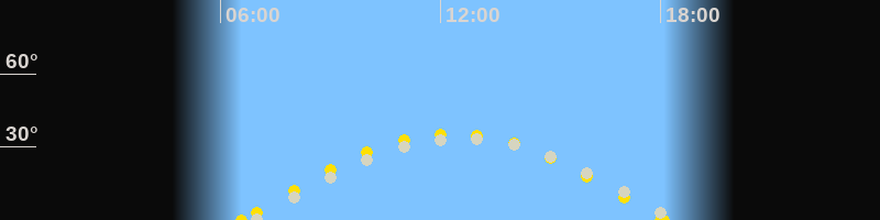 Höchster Stand (Kulmination)12:28 Uhr (h=33.2°)