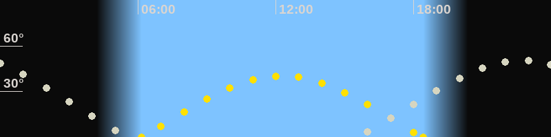 Höchster Sonnenstand (Kulmination)12:16 Uhr (h = 40.2°)