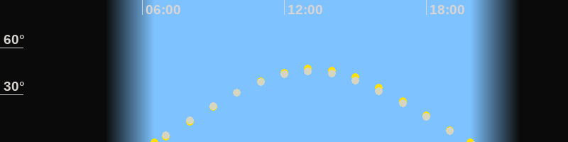 | Höchster Stand (Kulmination) | 12:55 Uhr (h=44.3°) |