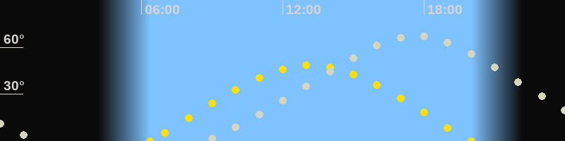 | Höchster Stand (Kulmination) | 17:35 Uhr (h=67.4°) |
