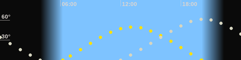 | Sonnenaufgang | 06:14 Uhr im Osten (αAz = 72.9°) |