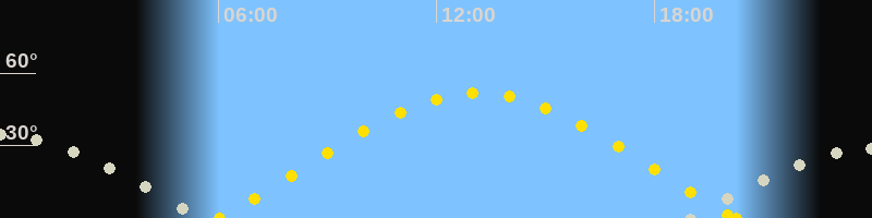 | Sonnenaufgang | 06:02 Uhr im Osten (αAz = 69.5°) |