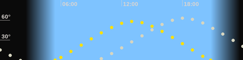Höchster Sonnenstand (Kulmination)13:06 Uhr (h = 57.9°)