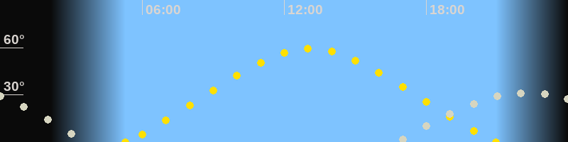 | Höchster Sonnenstand (Kulmination) | 13:06 Uhr (h = 59.2°) |