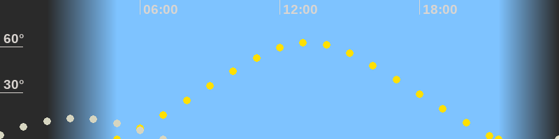 | Höchster Sonnenstand (Kulmination) | 13:12 Uhr (h = 62.7°) |