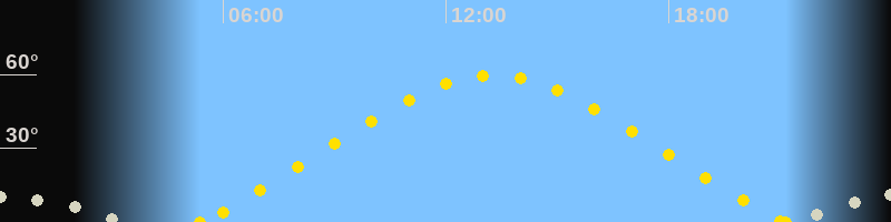Höchster Sonnenstand (Kulmination)13:16 Uhr (h = 59.8°)