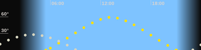 | Höchster Sonnenstand (Kulmination) | 13:16 Uhr (h = 59°) |