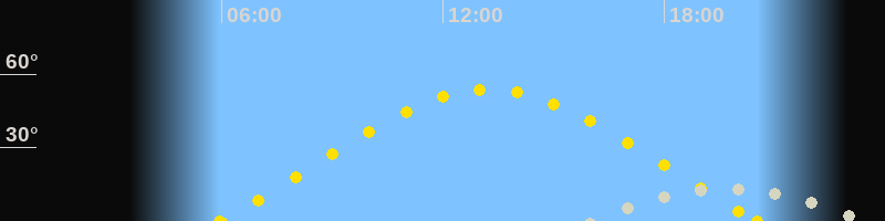 | Höchster Sonnenstand (Kulmination) | 13:15 Uhr (h = 53.7°) |