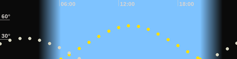 | Sonnenaufgang | 06:09 Uhr im Osten (αAz = 70.2°) |