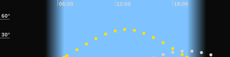 | Höchster Sonnenstand (Kulmination) | 13:06 Uhr (h = 43.5°) |
