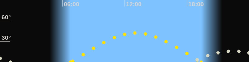 | Sonnenaufgang | 06:46 Uhr im Osten (αAz = 84.2°) |
