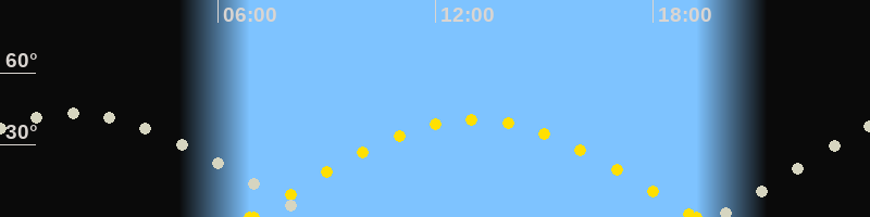 | Sonnenaufgang | 06:53 Uhr im Osten (αAz = 87.3°) |