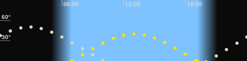 Höchster Sonnenstand (Kulmination)13:03 Uhr (h = 40.1°)