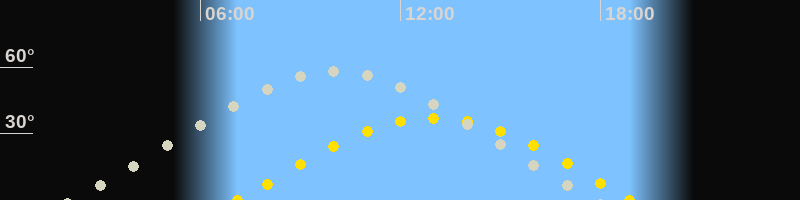 | Sonnenaufgang | 07:07 Uhr im Osten (αAz = 92.8°) |