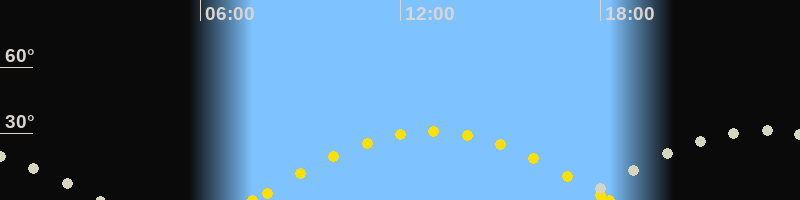 Höchster Sonnenstand (Kulmination)12:56 Uhr (h = 30.8°)