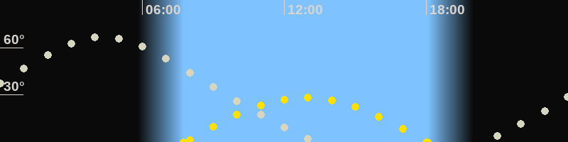 | Höchster Sonnenstand (Kulmination) | 12:54 Uhr (h = 28.3°) |