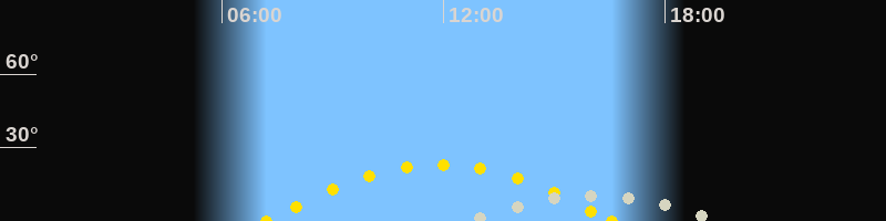 Höchster Sonnenstand (Kulmination)11:53 Uhr (h = 23.1°)