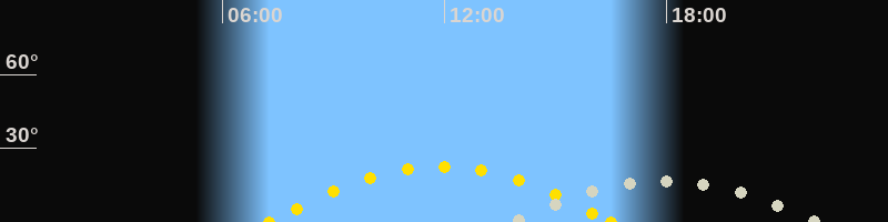 | Sonnenuntergang | 16:30 Uhr im Südwesten (αAz = 243.6°) |