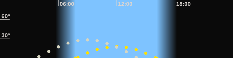 | Höchster Stand (Kulmination) | 09:01 Uhr (h=28.6°) |