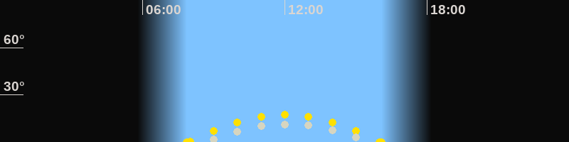 | Höchster Sonnenstand (Kulmination) | 11:59 Uhr (h = 17.4°) |