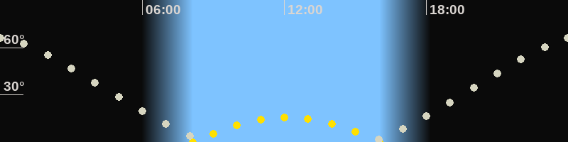 | Höchster Sonnenstand (Kulmination) | 12:05 Uhr (h = 16°) |
