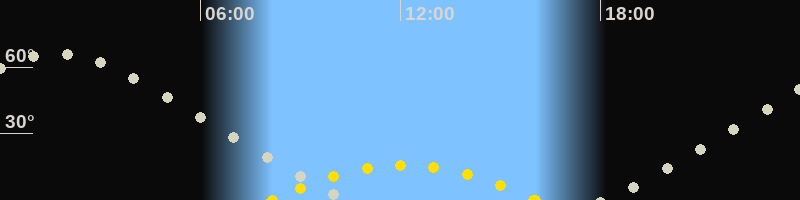 | Höchster Sonnenstand (Kulmination) | 12:06 Uhr (h = 15.9°) |