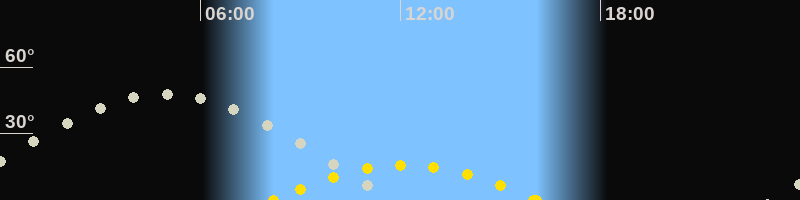 | Höchster Sonnenstand (Kulmination) | 12:08 Uhr (h = 15.8°) |