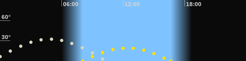 | Höchster Sonnenstand (Kulmination) | 12:21 Uhr (h = 19.3°) |