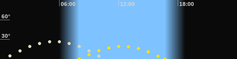 | Höchster Sonnenstand (Kulmination) | 12:21 Uhr (h = 19.5°) |