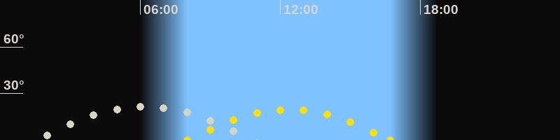 | Höchster Sonnenstand (Kulmination) | 12:21 Uhr (h = 19.7°) |