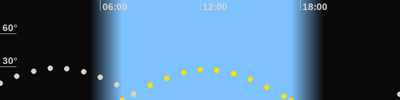 | Sonnenaufgang | 07:19 Uhr im Osten (αAz = 108.2°) |