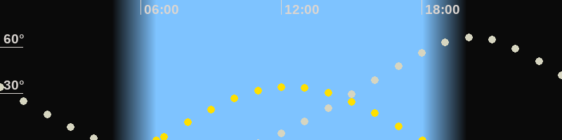 Sonnenuntergang18:01 Uhr im Westen (αAz = 263.4°)
