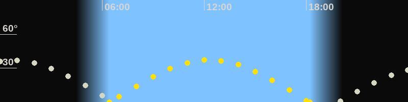 Höchster Stand (Kulmination)00:43 Uhr (h=37°)