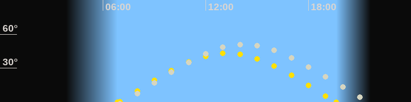 Höchster Sonnenstand (Kulmination)13:14 Uhr (h = 43.3°)
