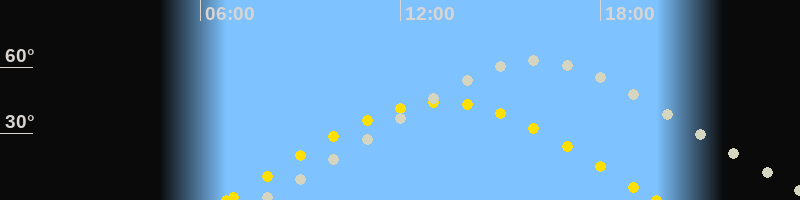 | Höchster Sonnenstand (Kulmination) | 13:14 Uhr (h = 44°) |