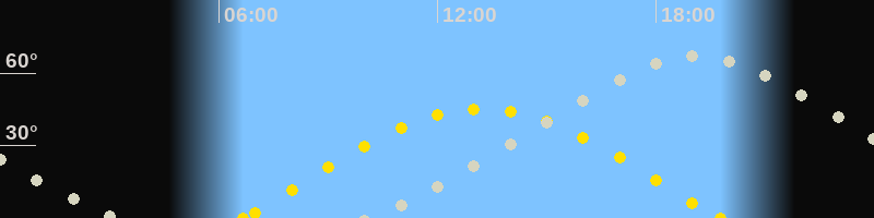 | Sonnenaufgang | 06:40 Uhr im Osten (αAz = 80.1°) |