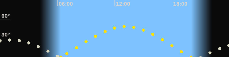 Höchster Sonnenstand (Kulmination)13:10 Uhr (h = 48.5°)
