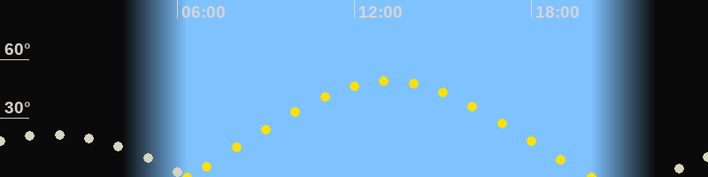 | Sonnenaufgang | 06:19 Uhr im Osten (αAz = 74.2°) |